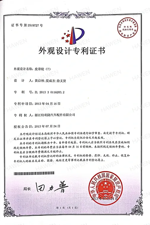 Giấy chứng nhận Pantent thiết kế-11 mặt hàng